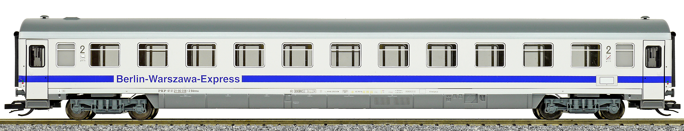 | rychlíkový vůz bílý s šedou střechou 2. tř. „Berlin-Warzawa-Express“ |