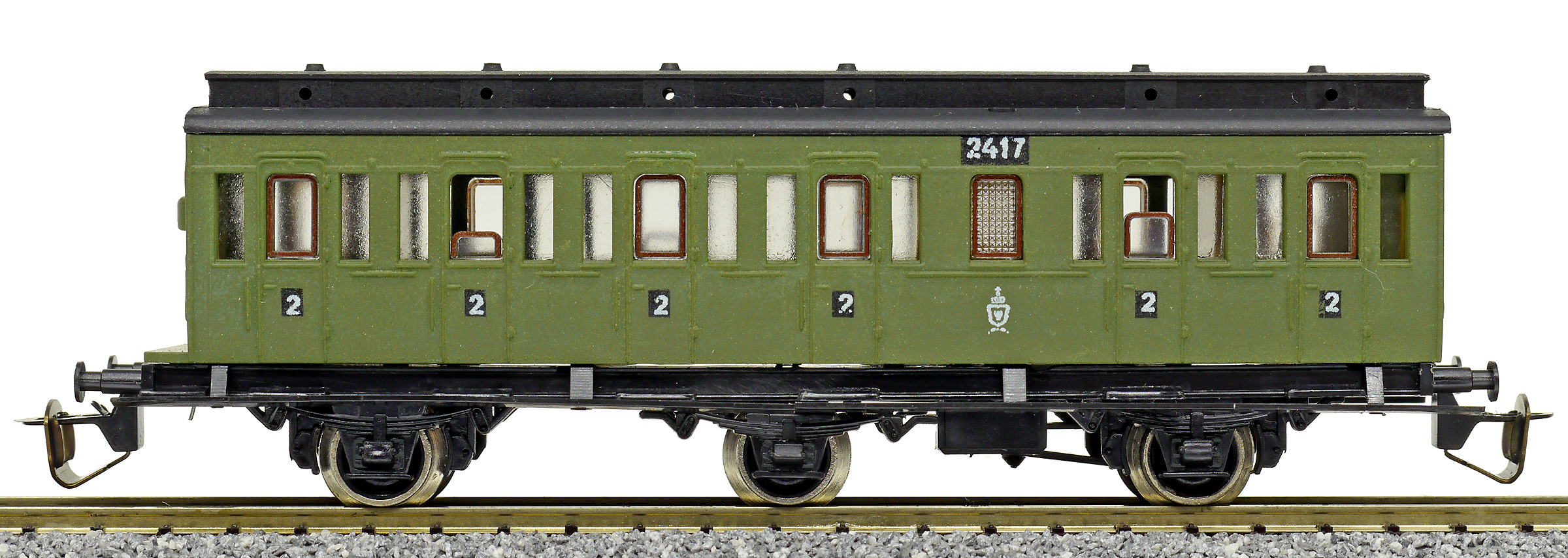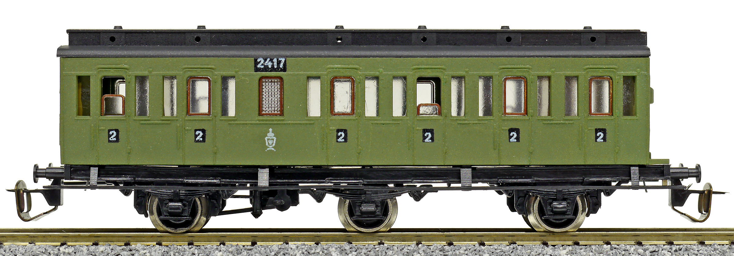 oddílový osobní vůz zelený s černou střechou 2. tř.