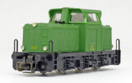 | dieselová lokomotiva zelená s černým rámem a pojezdem |
