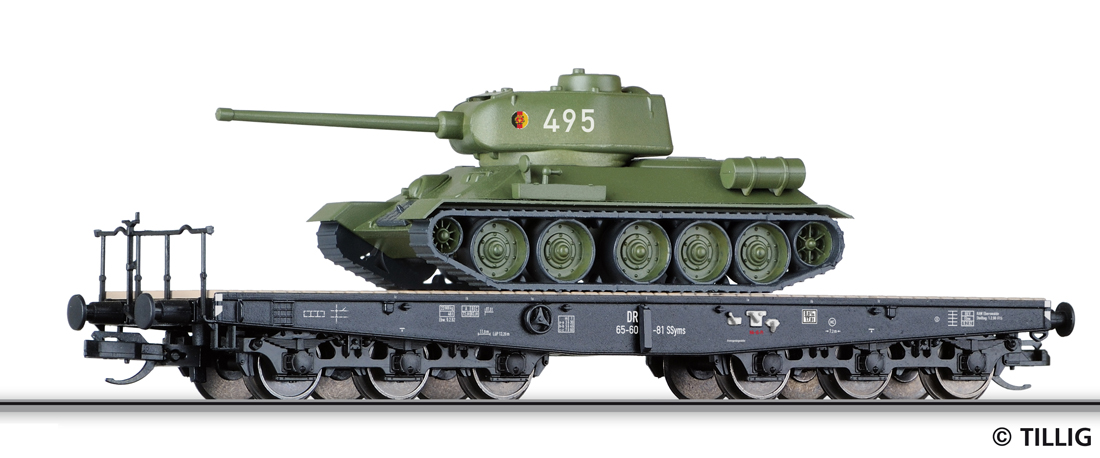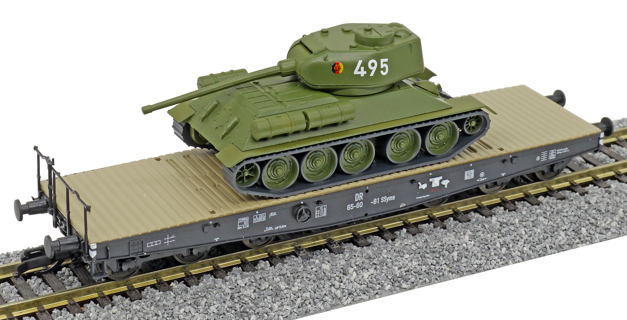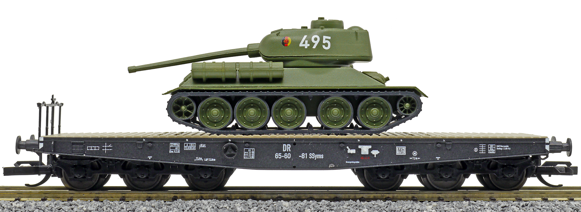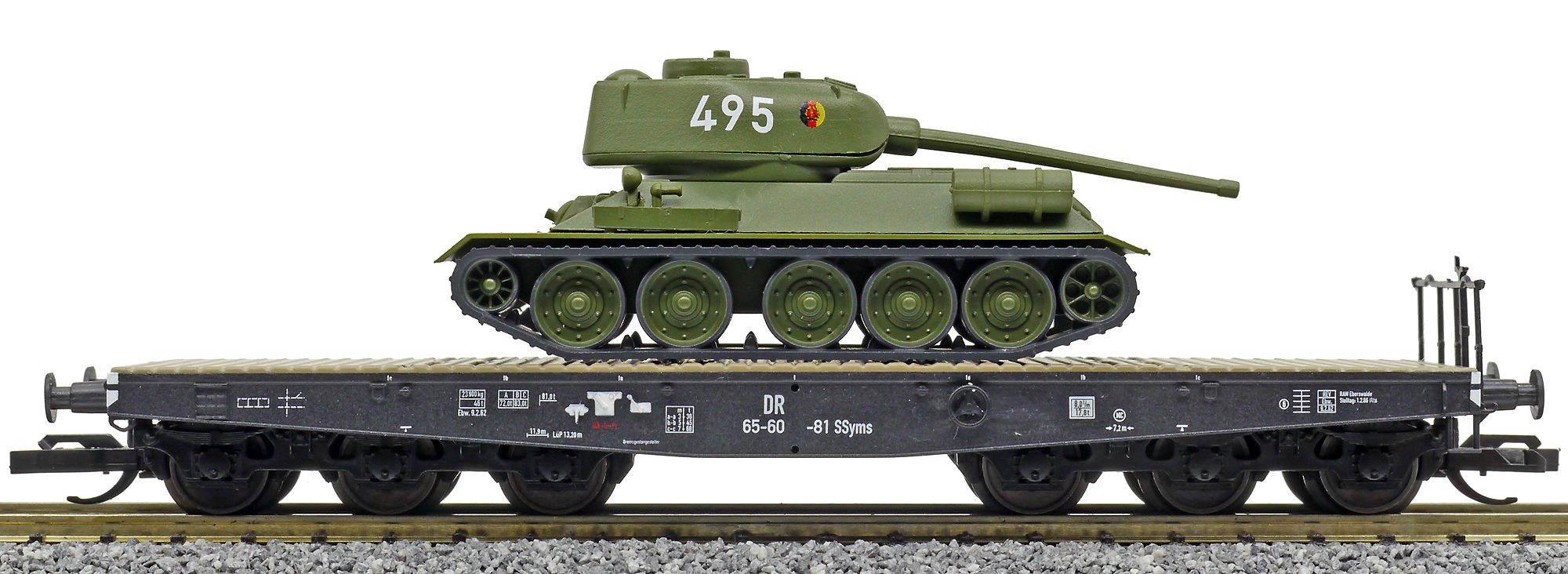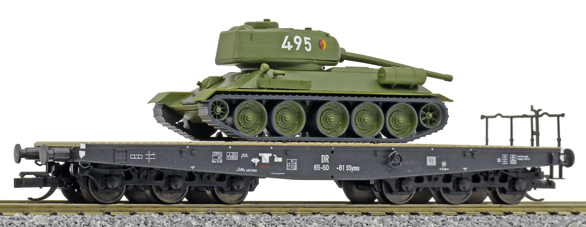 Popis   set krytého vozu a dvou plošinových vozů s tanky T34/85