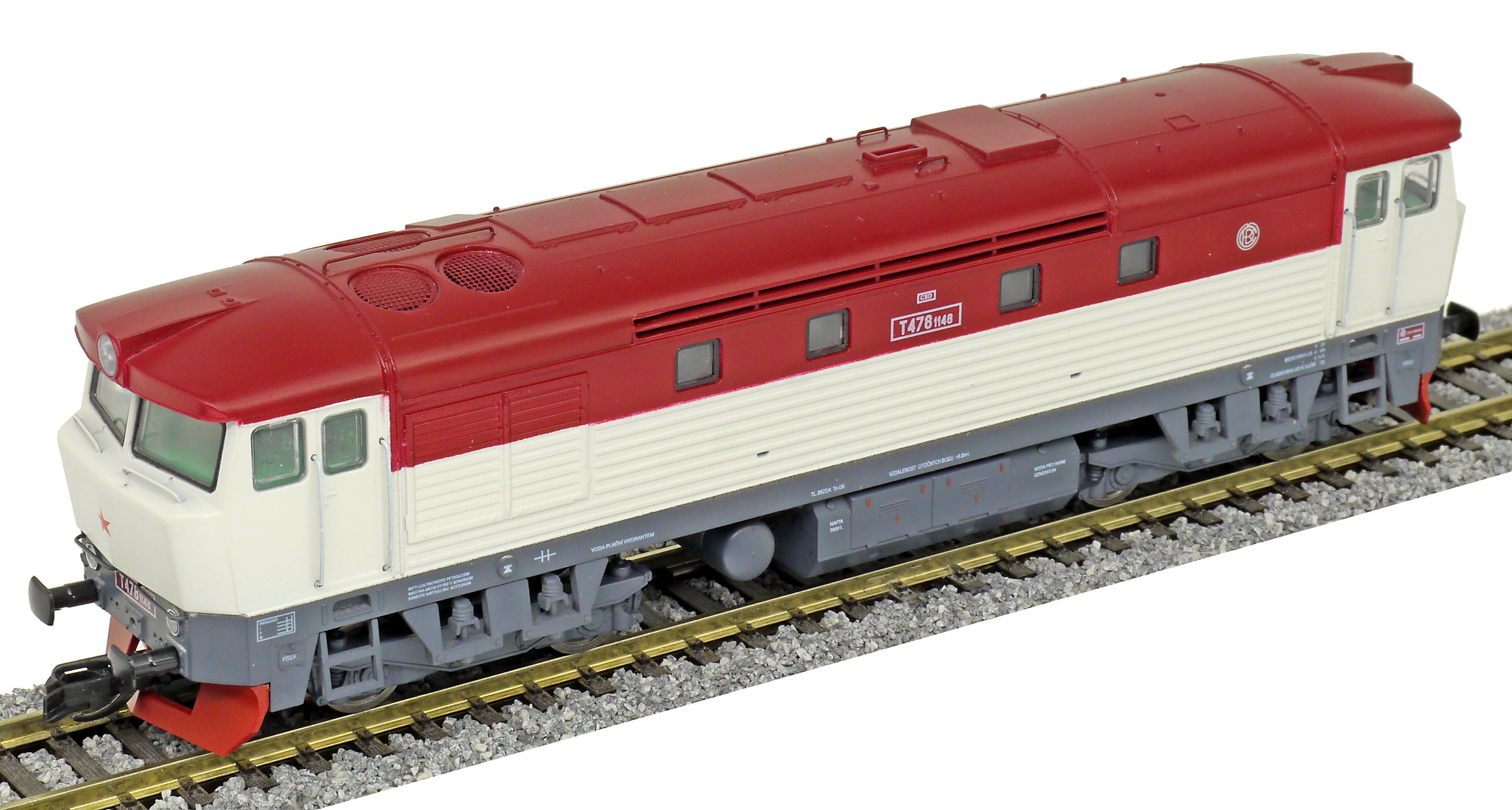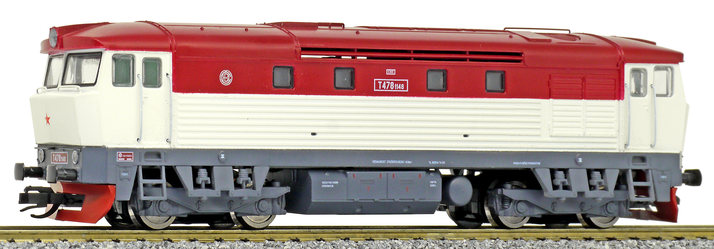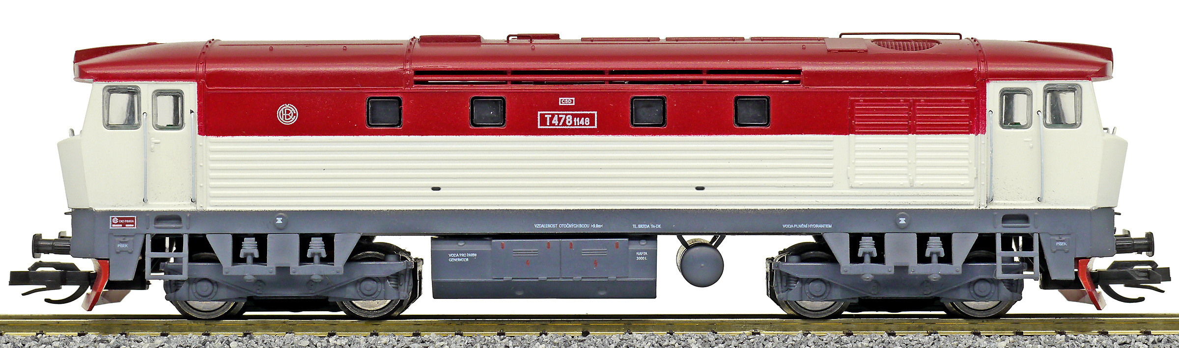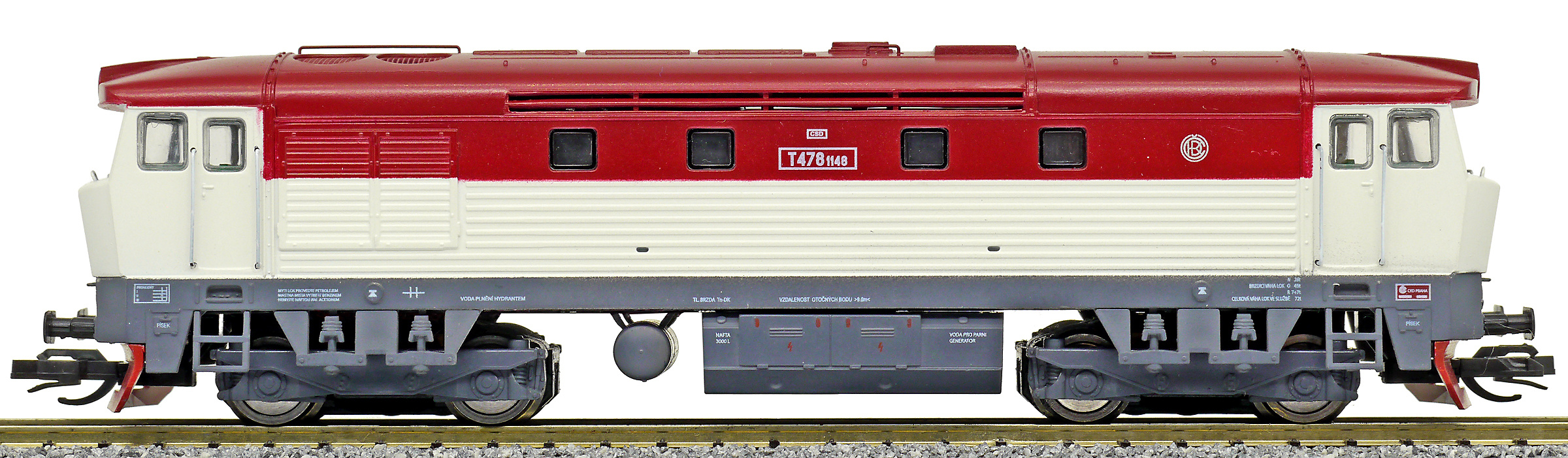 Popis   dieselová lokomotiva bílá-červená, šedý rám a podvozky