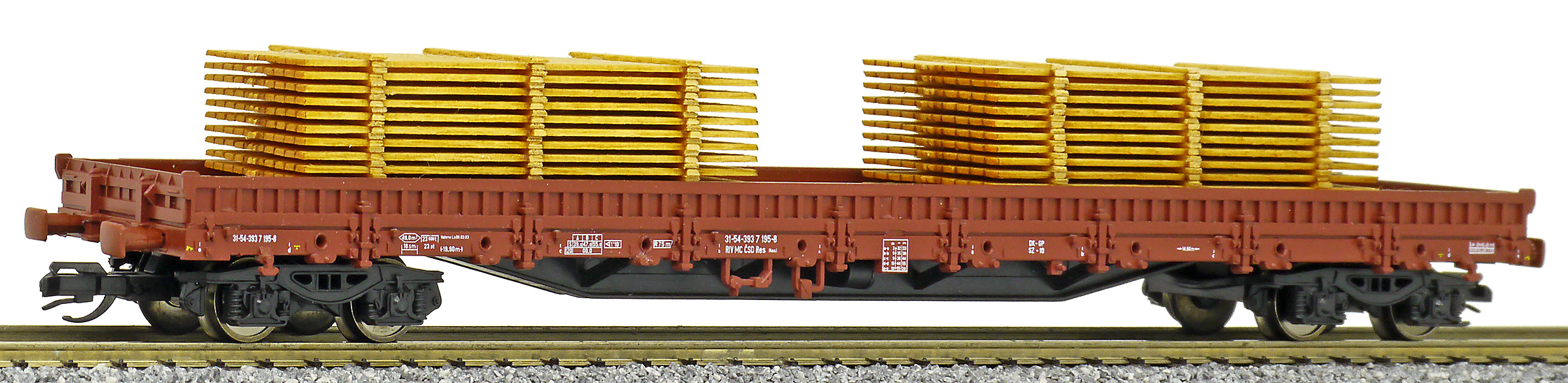 | • 31-54-393 7 195-8 | → | nákladní, s podvozky, pevný rozchod, ve vlastnictví železniční správy, RIV, PPV |
