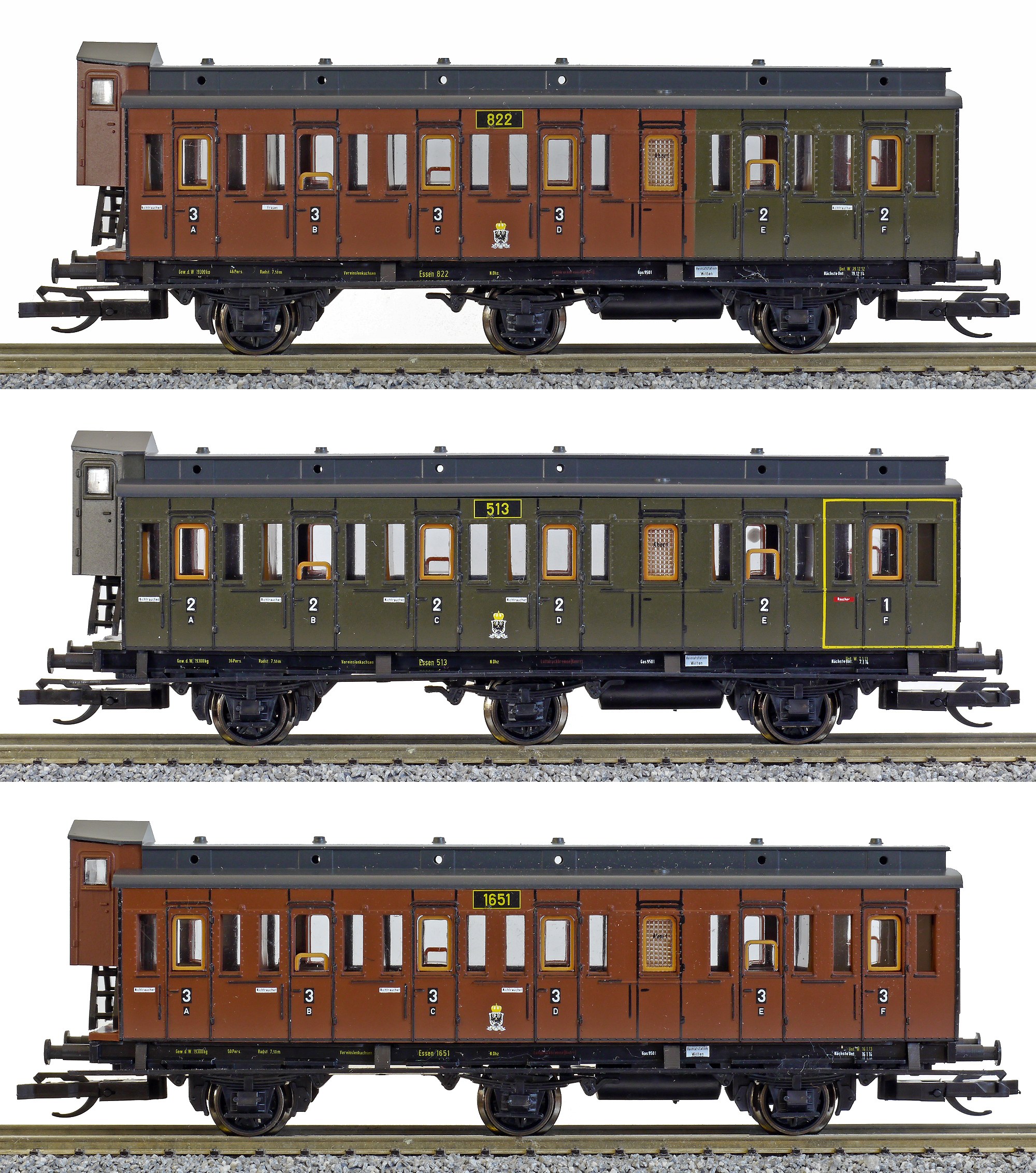 Popis   oddílový osobní vůz červenohnědý-zelený s černou střechou a brzdařskou budkou 2./3. tř.