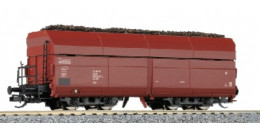 | nákladní samovýsypný vůz červenohnědý s nákladem uhlí |