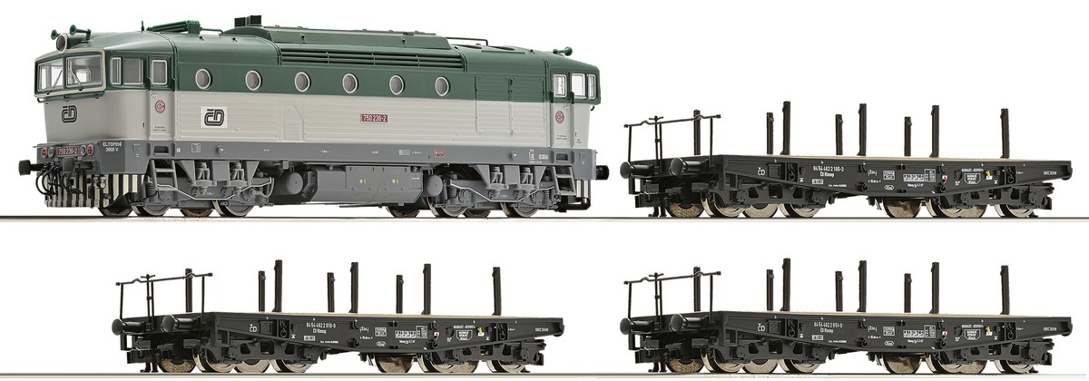 Popis   set dieselové lokomotivy 750 a tří plošinových vozů Rlmmp