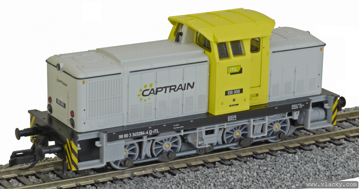 Popis   bílá-žlutá s černým rámem a pojezdem „CAPTRAIN“