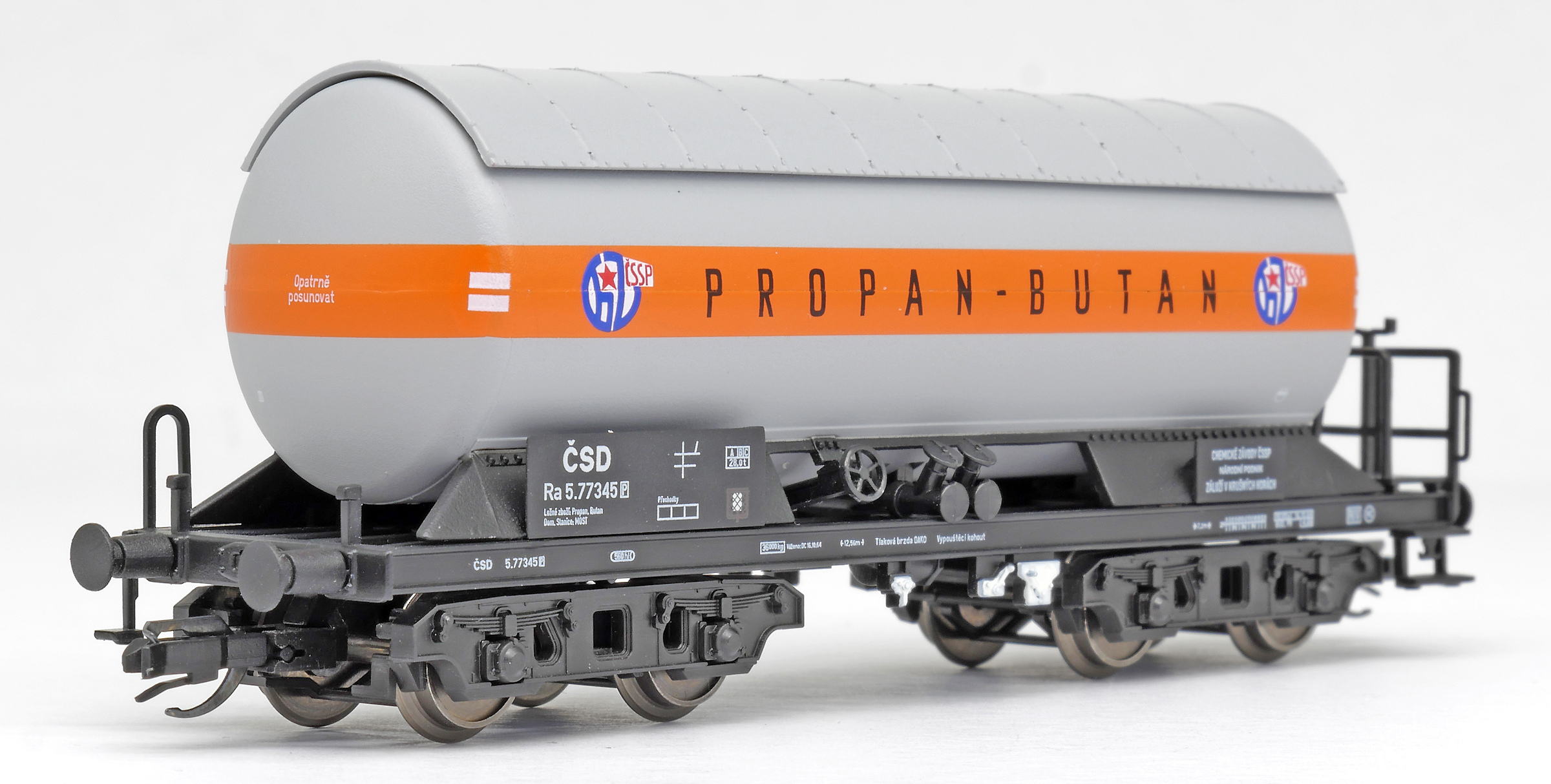 | kotlový vůz na plyn se slunečním štítem „PROPAN-BUTAN“ |