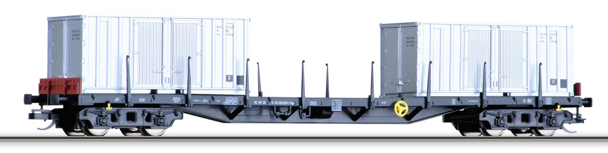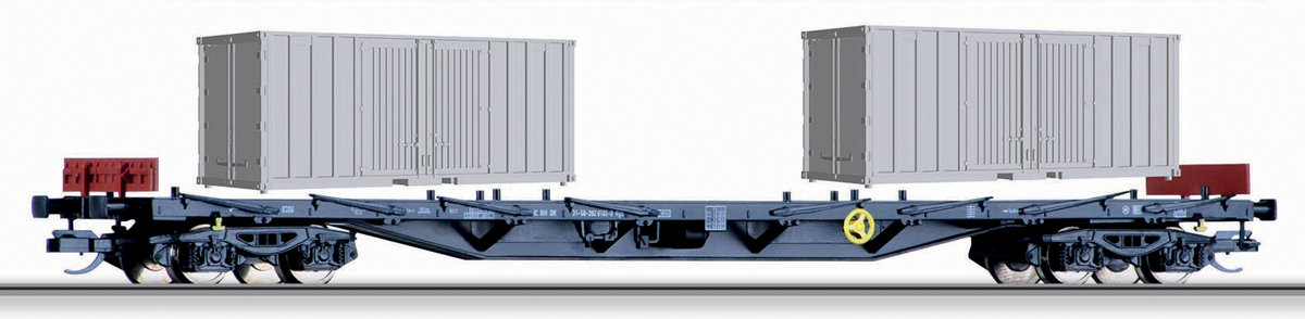 | nákladní plošinový vůz černý s nákladem dvou kontejnerů 20' |