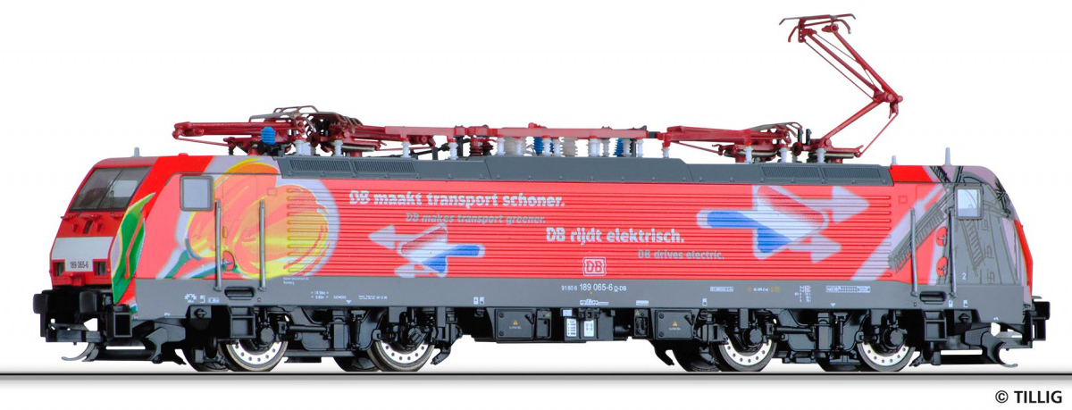 Popis   elektrická lokomotiva červená s potiskem „Tulpen-Dekor“