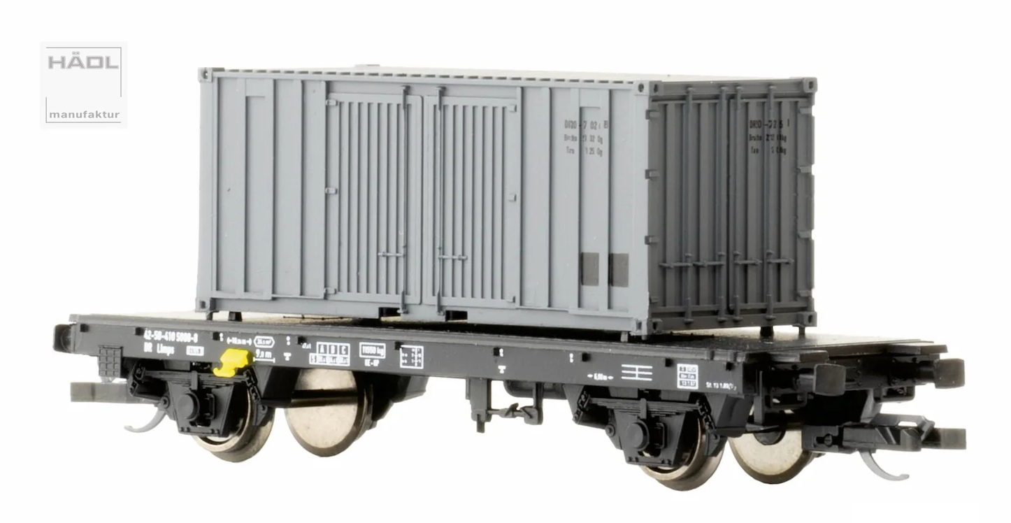 | černý plošinový s nákladem kontejneru 20' |