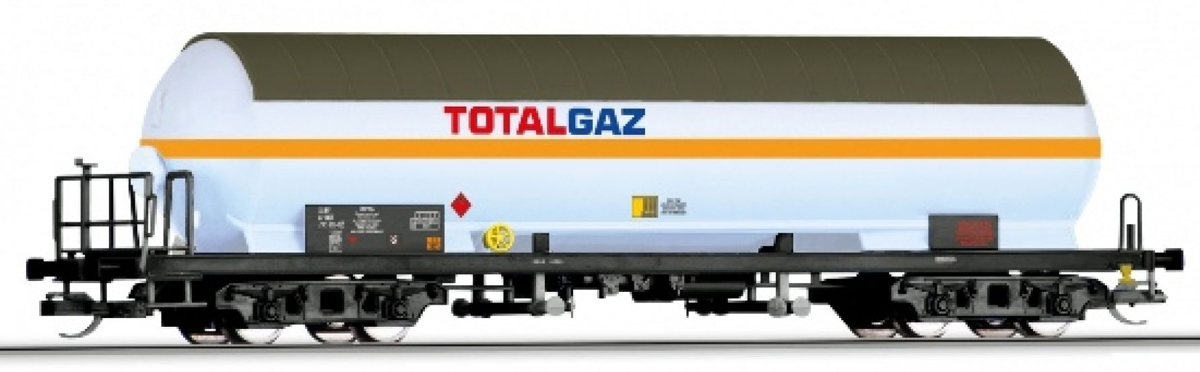 Popis   kotlový vůz bílý s slunečním štítem na plyn „TOTALGAZ“