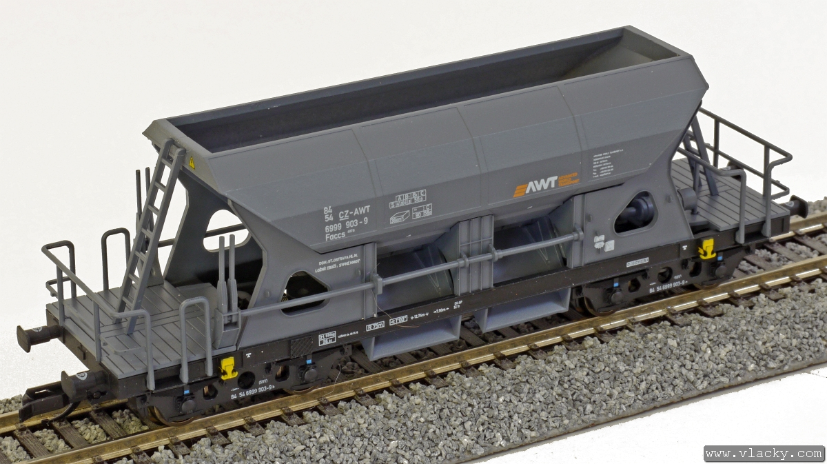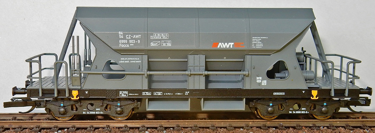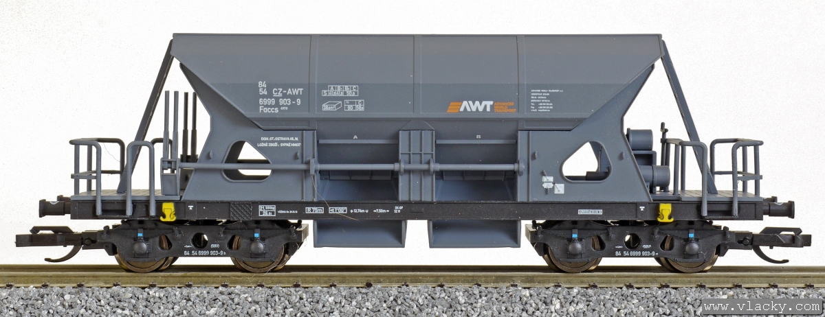 | nákladní samovýsypný vůz šedý s logem „AWT“ |
