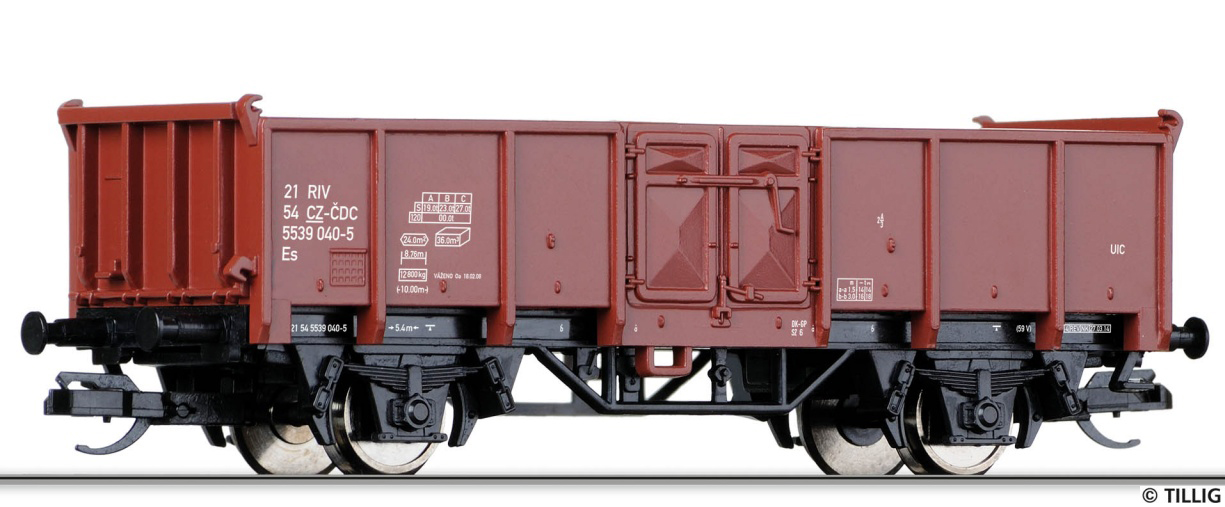 | • Es | - | otevřený vůz běžné stavby čelně a bočně výklopný, s plochou podlahou |