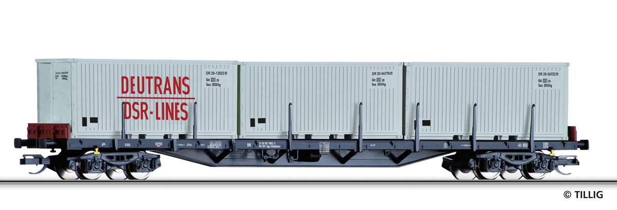 | nákladní plošinový vůz černý s nákladem tří kontejnerů 20 |