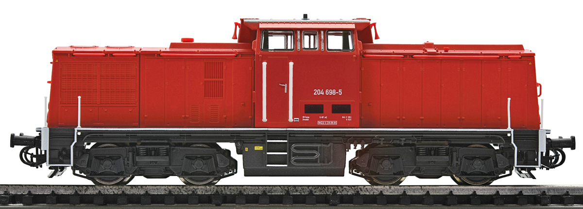 Popis   dieselová lokomotiva červená s černým rámem a pojezdem
