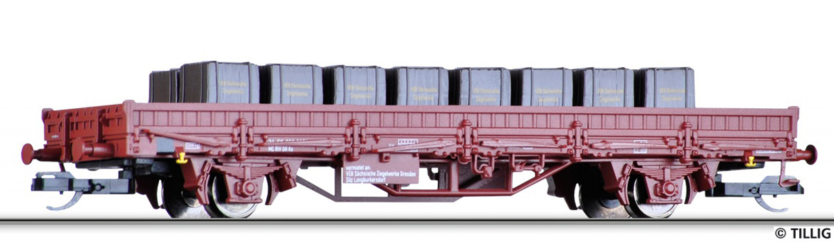 | nízkostěnný nákladní vůz červenohnědý s nákladem cihel „VEB Sächsische Ziegelwerke“ |