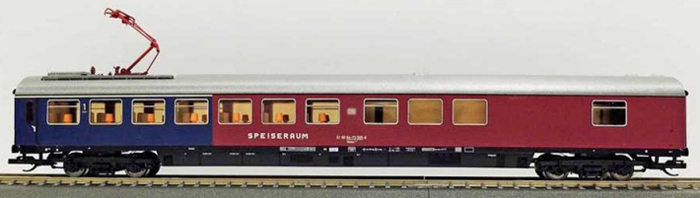 | červený-modrý, šedá střecha s pantografem, jídelní vůz „Kakadu“ |