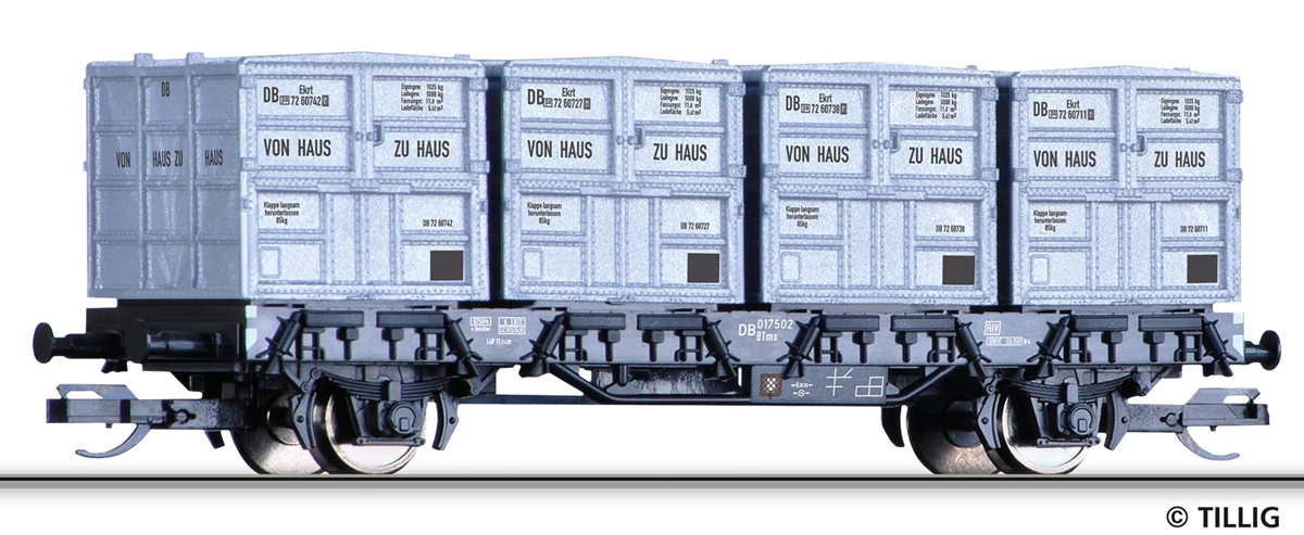 kontejnerový vůz černý se čtyřmi kontejnery „Haus-zu-Haus“