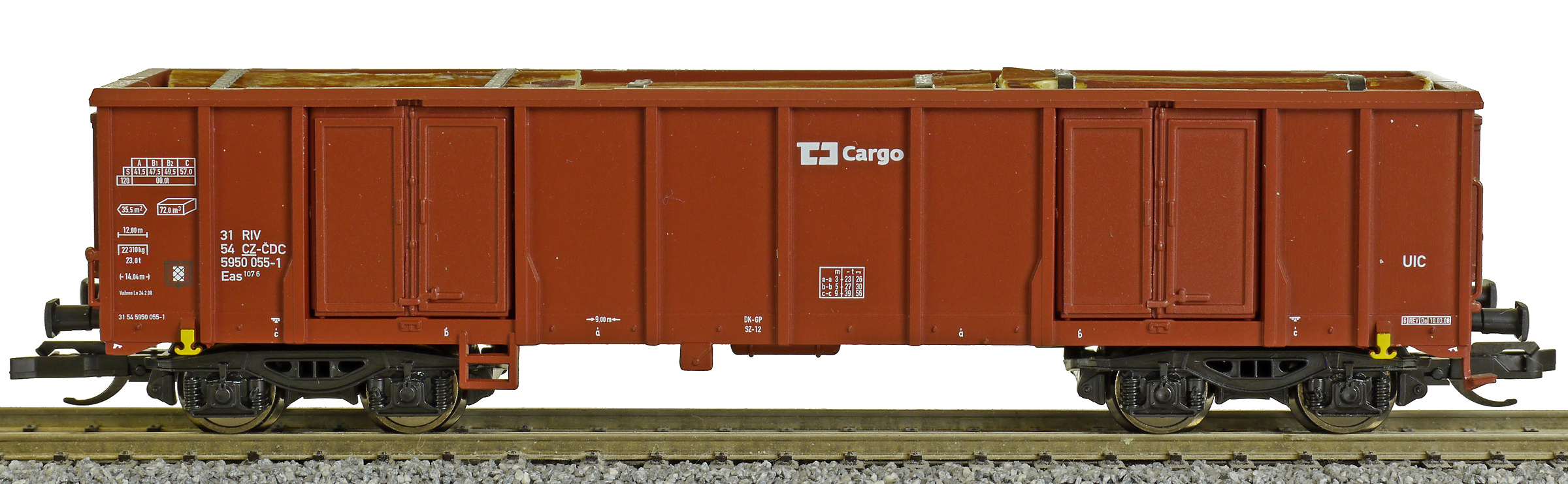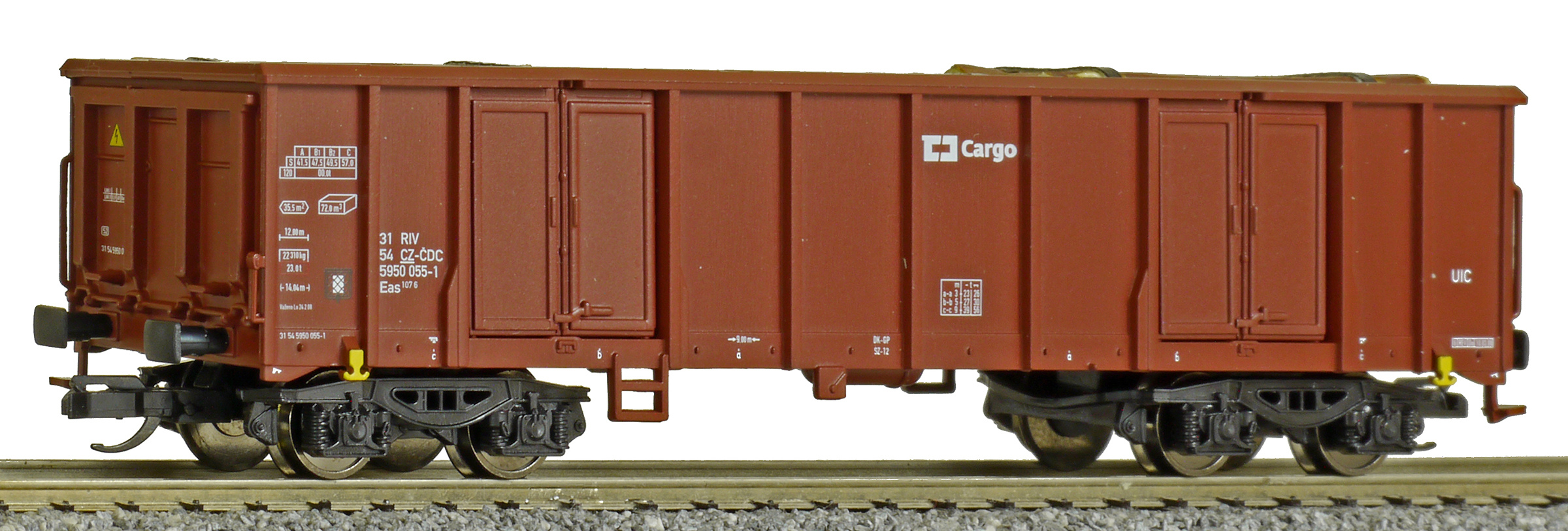 | • 31 54 5950 055-1 | → | nákladní, s podvozky, pevný rozchod, ve vlastnictví železniční správy, RIV, PPV |