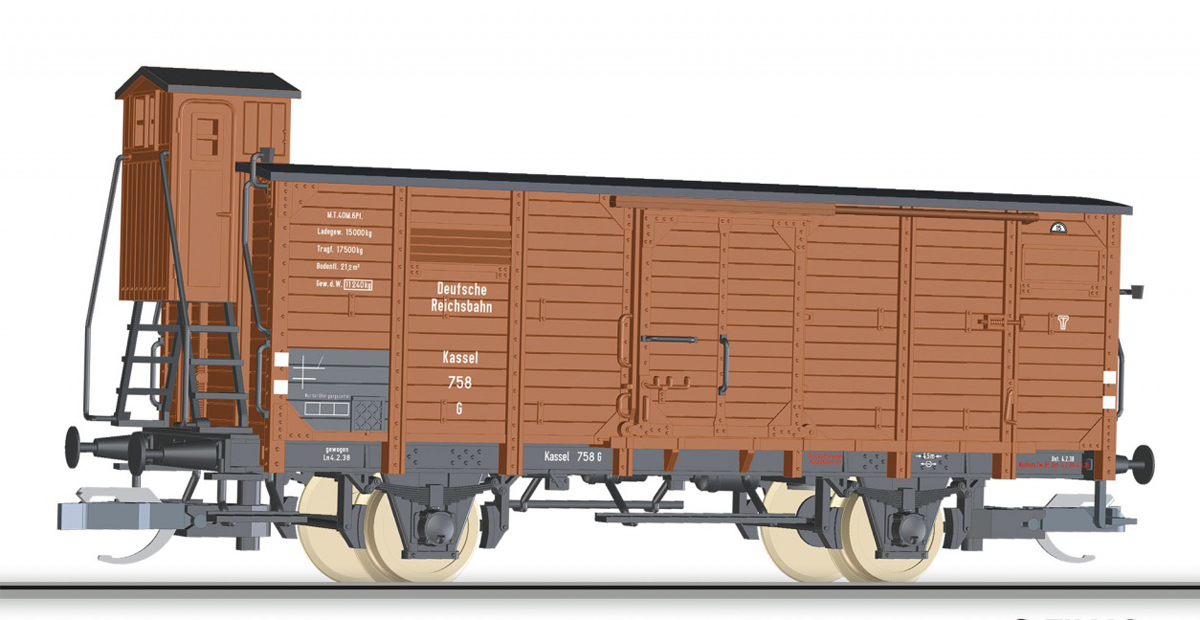 Popis   krytý nákladní vůz červenohnědý s brzdařskou budkou