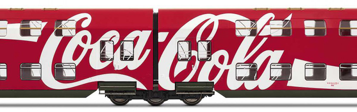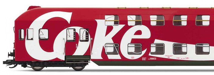 | čtyřdílná patrová jednotka v reklamních barvách „Coca-Cola“ |