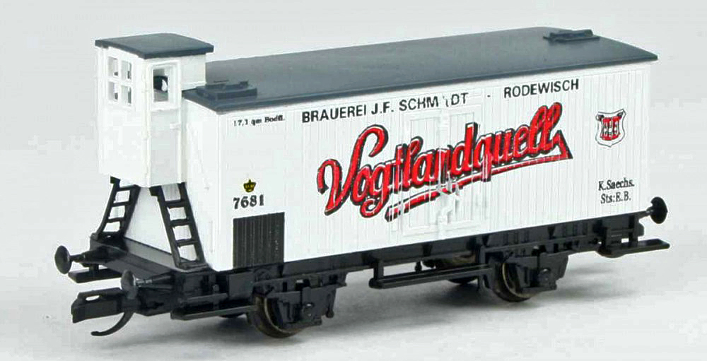 | bílý chladící vůz s tmavě šedou střechou „Vogtlandquell“ |