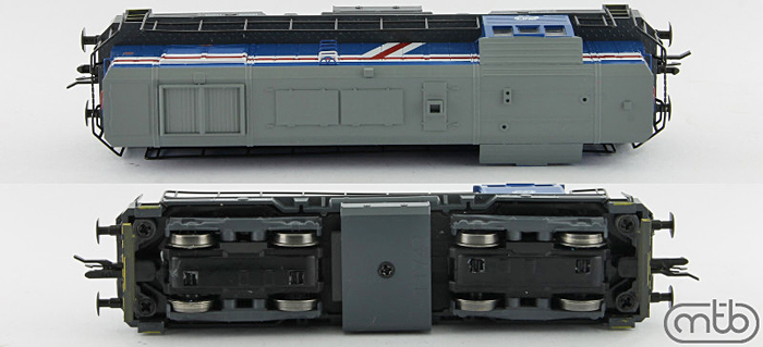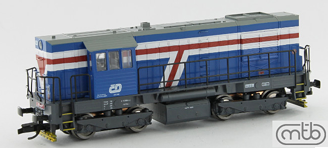 Popis   dieselová lokomotiva modrá s černým pojedem, šedá střecha