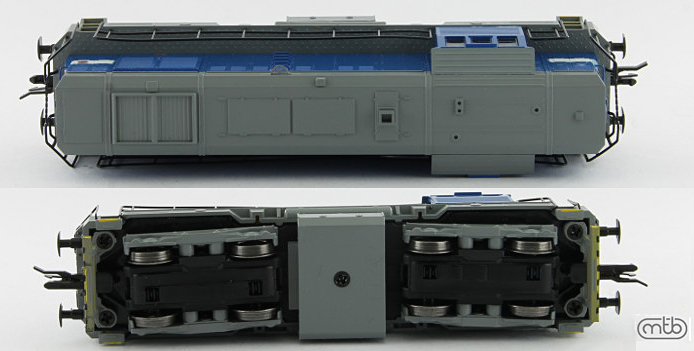 měřítko 1:120 - rozchod kolejí 12 mm osvětlení - 3 reflektory vpředu, 2 světla vzadu, přepínatelné podle směru jízdy 4 hnané nápravy 0 bandážovaných náprav kinematika krátkého spřáhla (KKK) podle normy NEM 358 digitální rozhraní podle NEM 662 s konektorem Next18 setrvačník 112 mm - celková délka modelu přes nárazníky 4 - celkový počet náprav nebo rozložení náprav