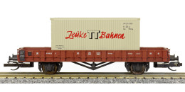 | nízkostěnný nákladní vůz červenohnědý s kontejnerem „Zeuke TT Bahnen“ |