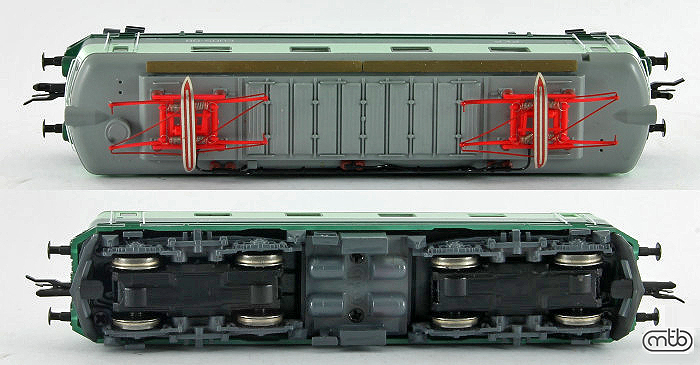 Popis   elektrická lokomotiva zelená s šedou střechou