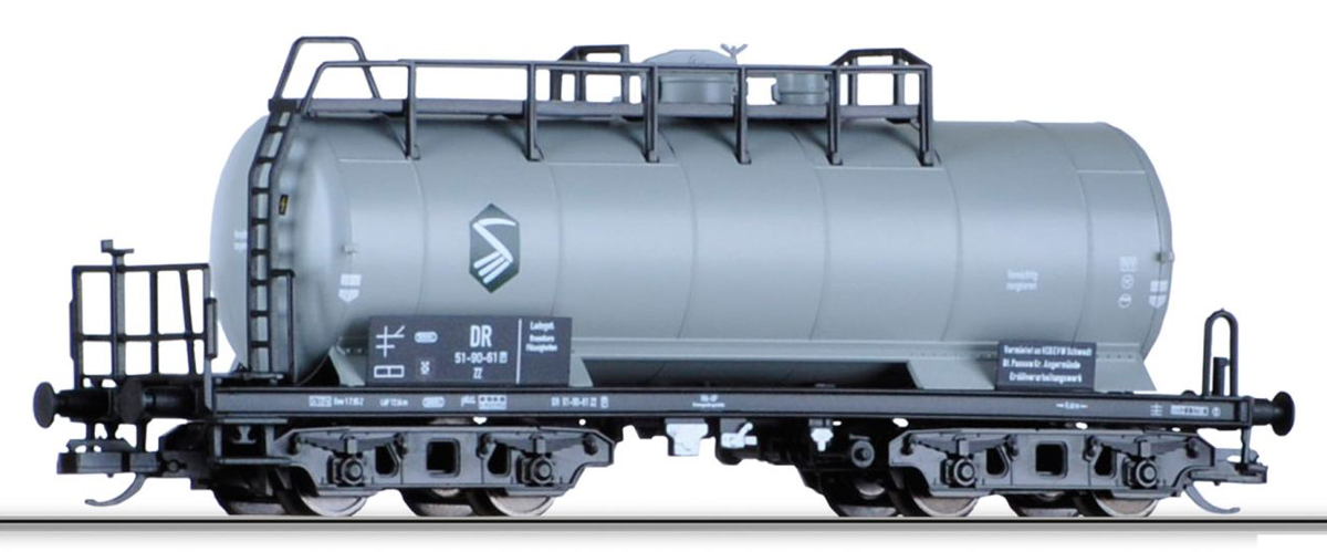 | kotlový vůz světle šedý s logem „VEB EVW Schwedt“ |