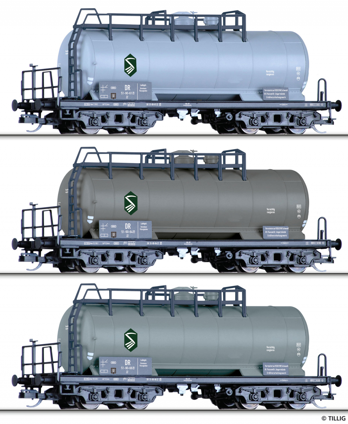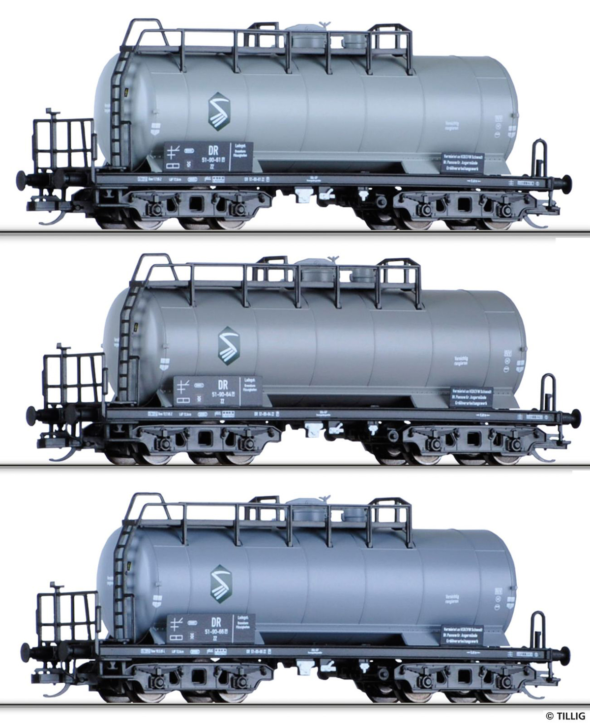 | set tří kotlových vozů s logem „VEB EVW Schwedt“ |