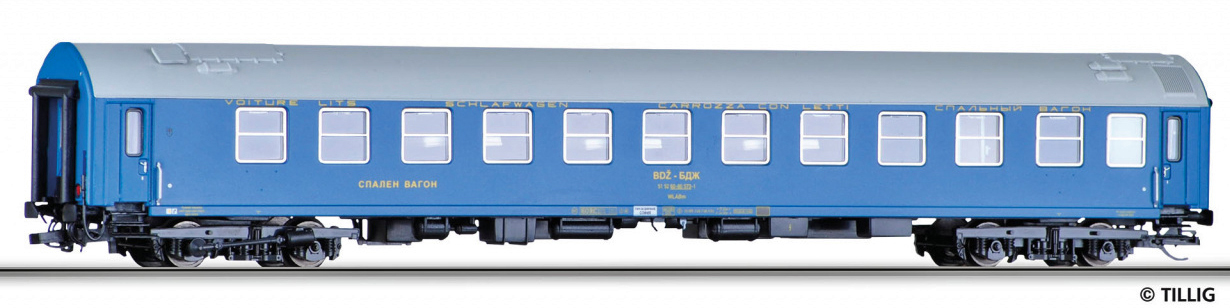 | lůžkový vůz modrý s šedou střechou |