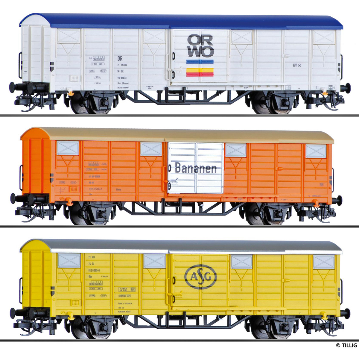 | set tří nákladních krytých vozů |