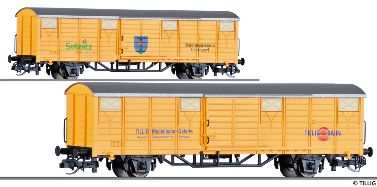 | krytý nákladní vůz oranžový s šedou střechou jako suvenýr „TILLIG/Sebnitz“ |