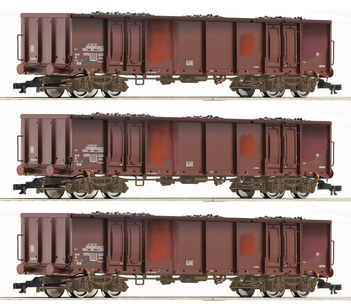 | set tří otevřených vysokostěnných vozů s nákladem uhlí |