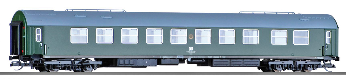 | lůžkový vůz s osmi oddíly zelený s šedou střechou |