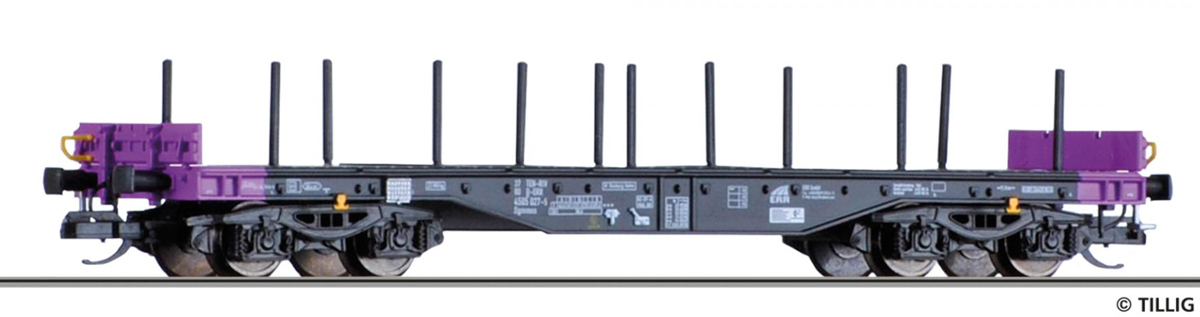 | plošinová nákladní vůz černý s klanicemi „European Rail Rent GmbH“ |