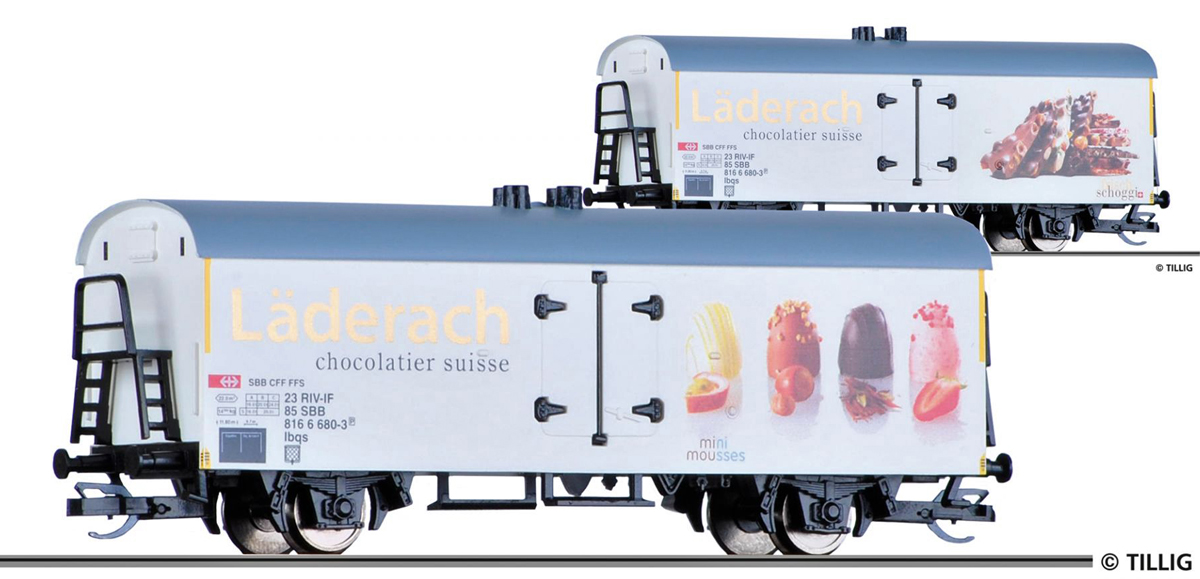 | chladicí vůz bílý s šedou střechou „Läderach“ |