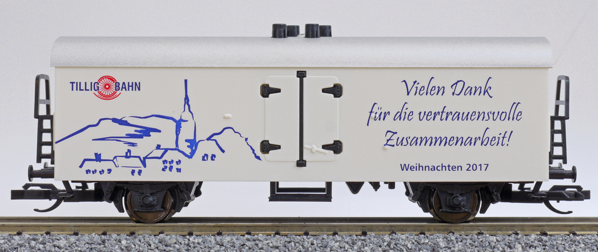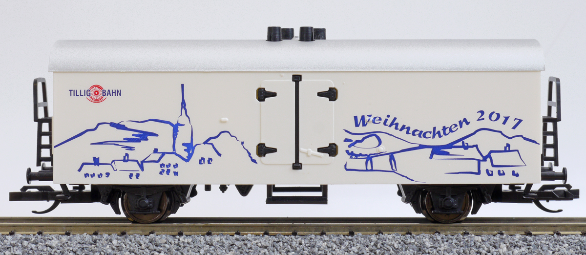 | chladící vůz bílý se stříbrnou střechou a s reklamním potiskem „Weihnachten 2017“ |