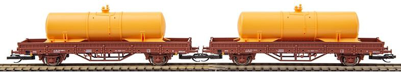 | set dvou nízkostěnných vozů s nákladem kotlů |