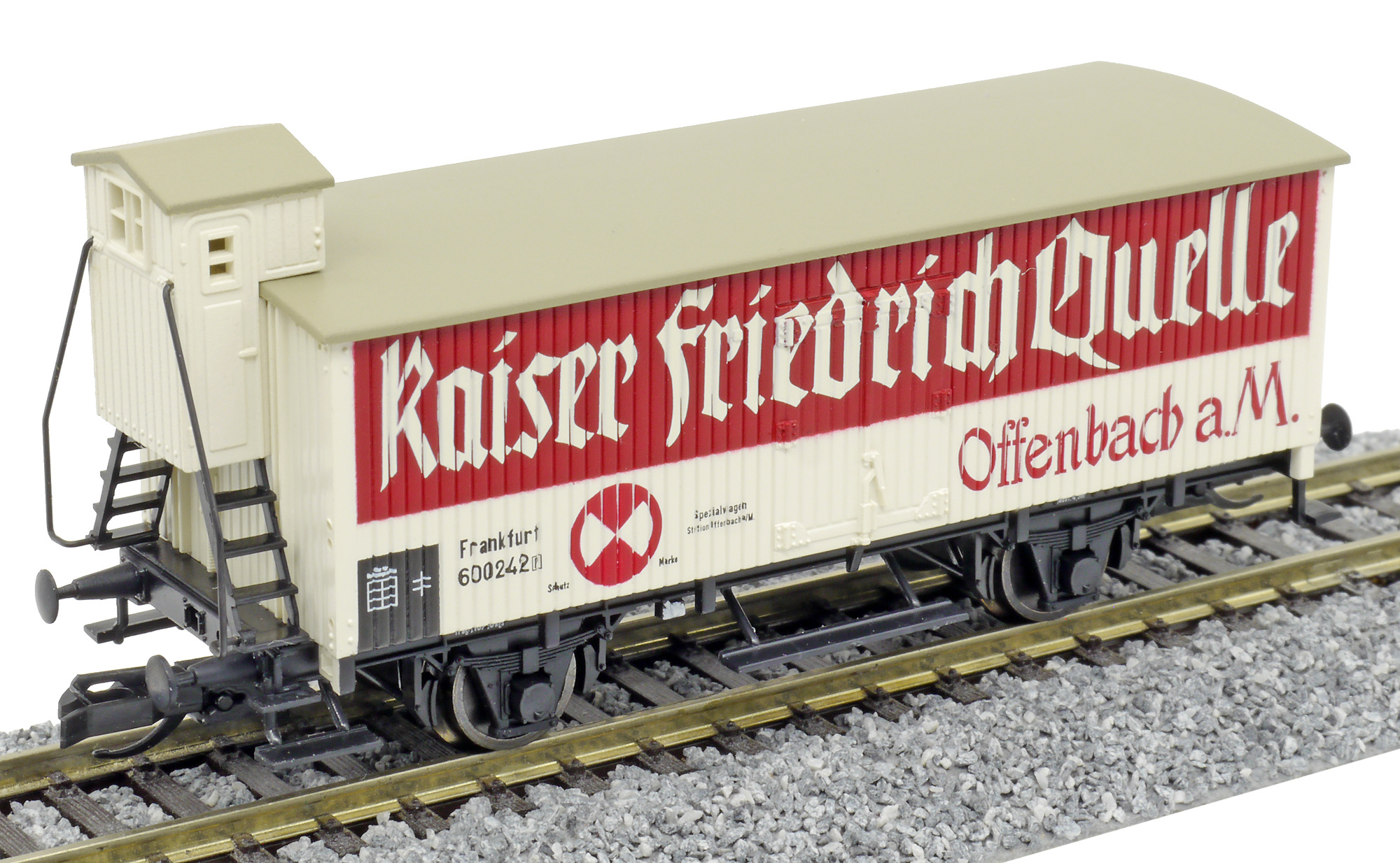 | nákladní izotermický vůz bílý s šedou střechou „Kaiser Friedrich Quelle“ |