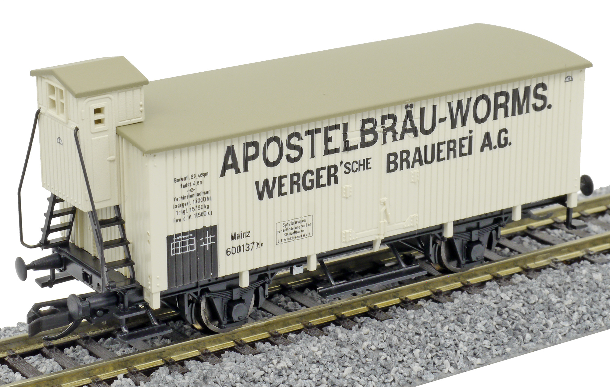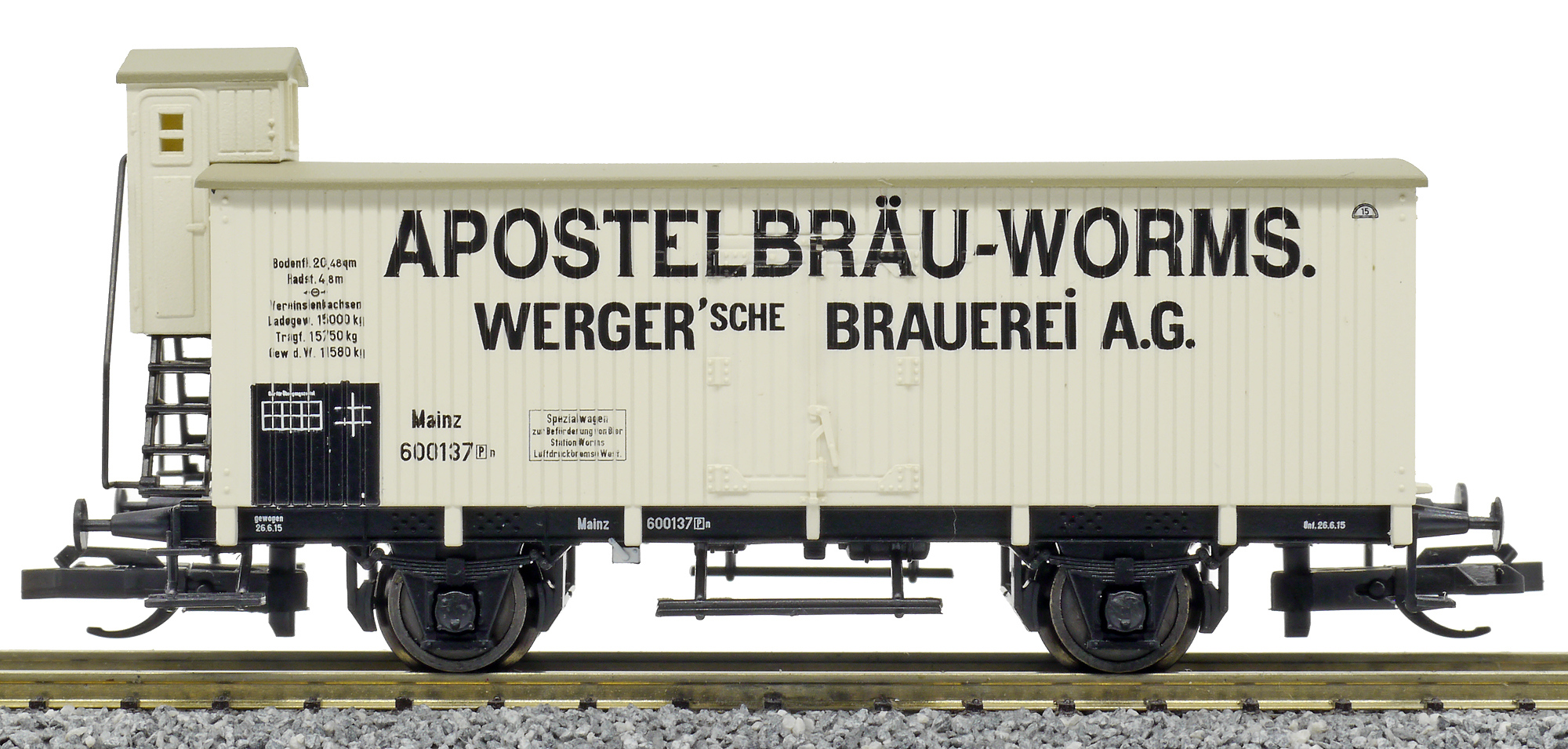 | nákladní izotermický vůz bílý s šedou střechou „APOSTELBRAU-WORMS.“ |