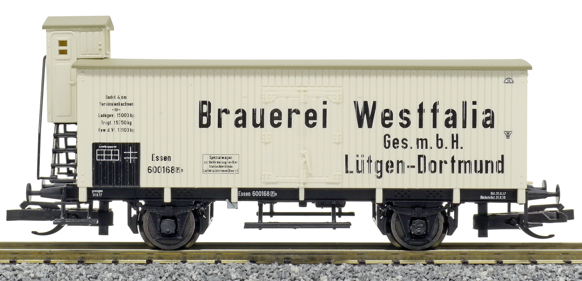 | nákladní izotermický vůz bílý s šedou střechou „Brauerei Westfalia“ |