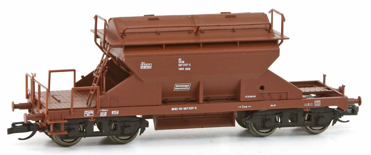 | samovýsypný vůz červenohnědý s krycími klapkami |