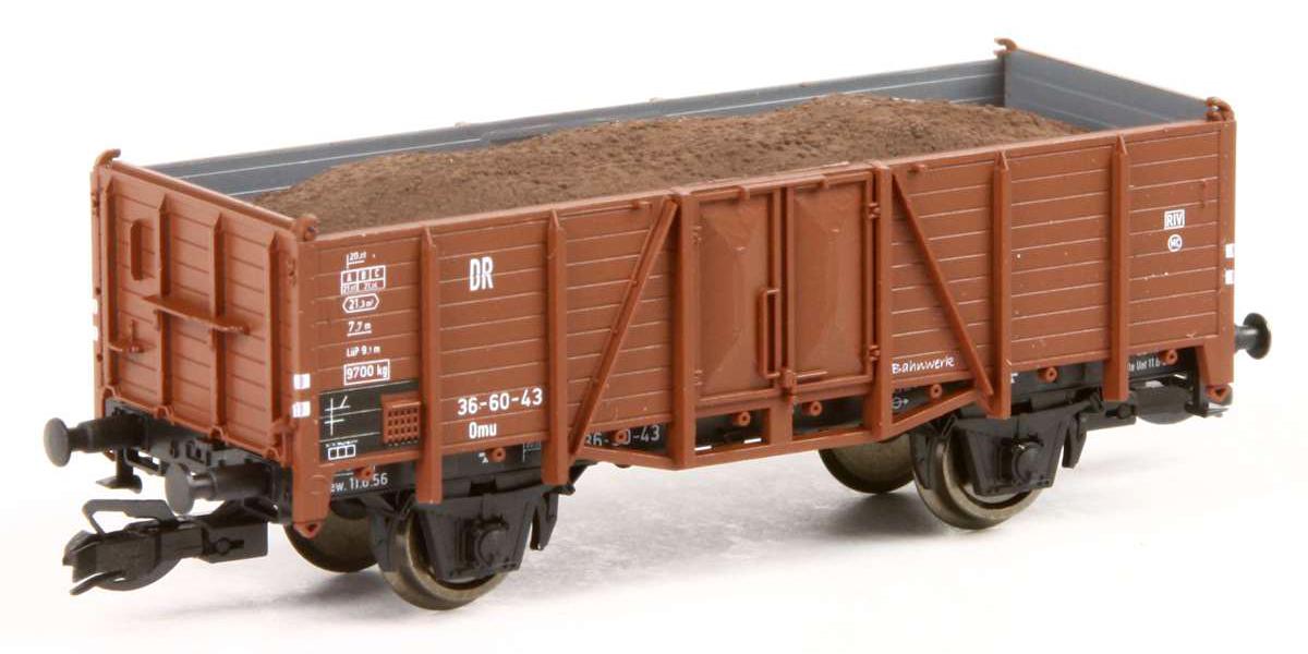 otevřený nákladní vůz červenohnědý s nákladem uhlí