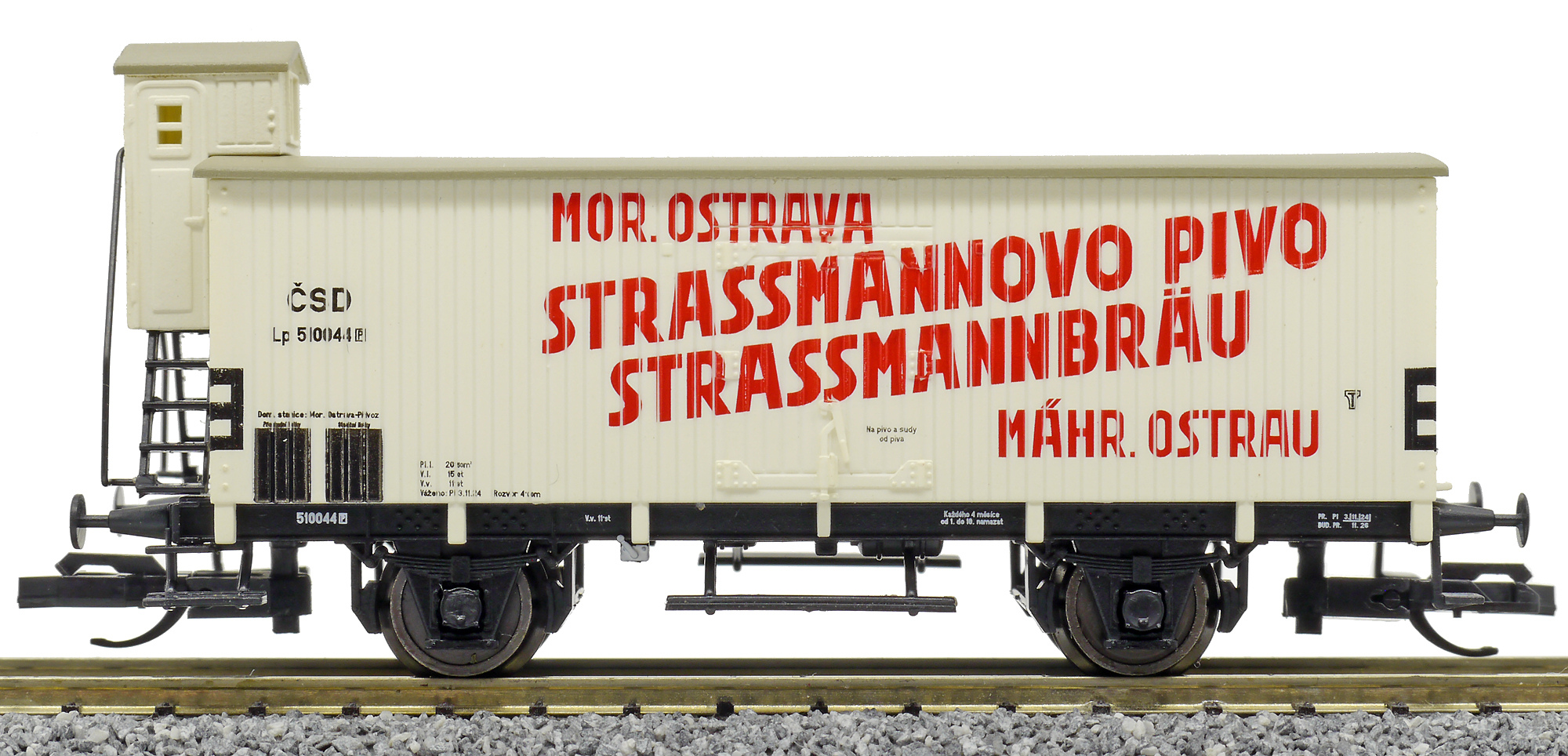 | chladicí vůz bílý s šedou střechou „Strassmannbräu Mährisch Ostrau“ |