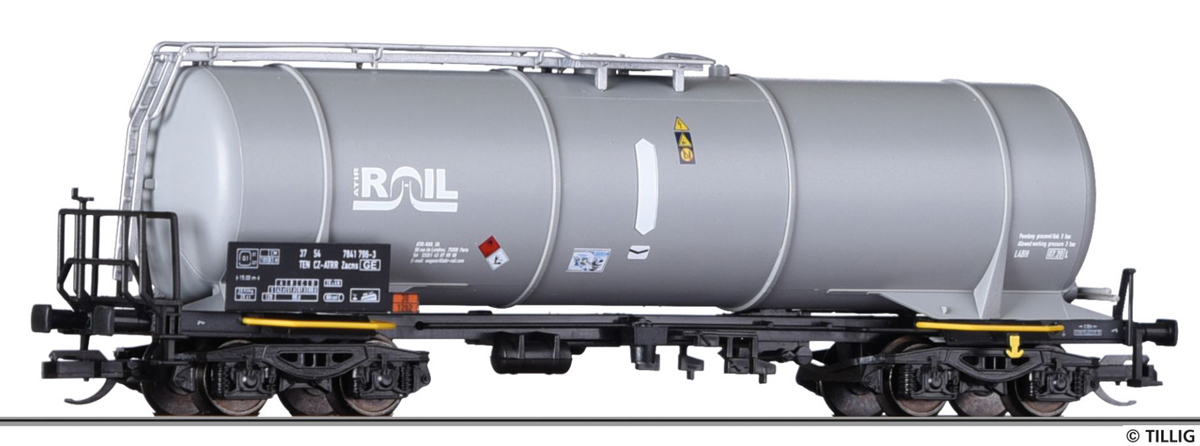 | kotlový vůz šedý s logem „ATIR-RAIL“ |