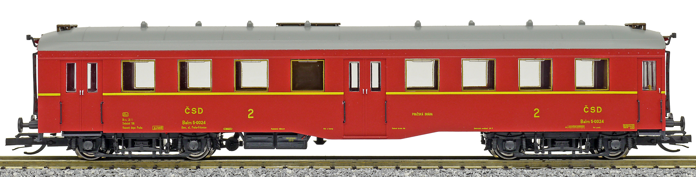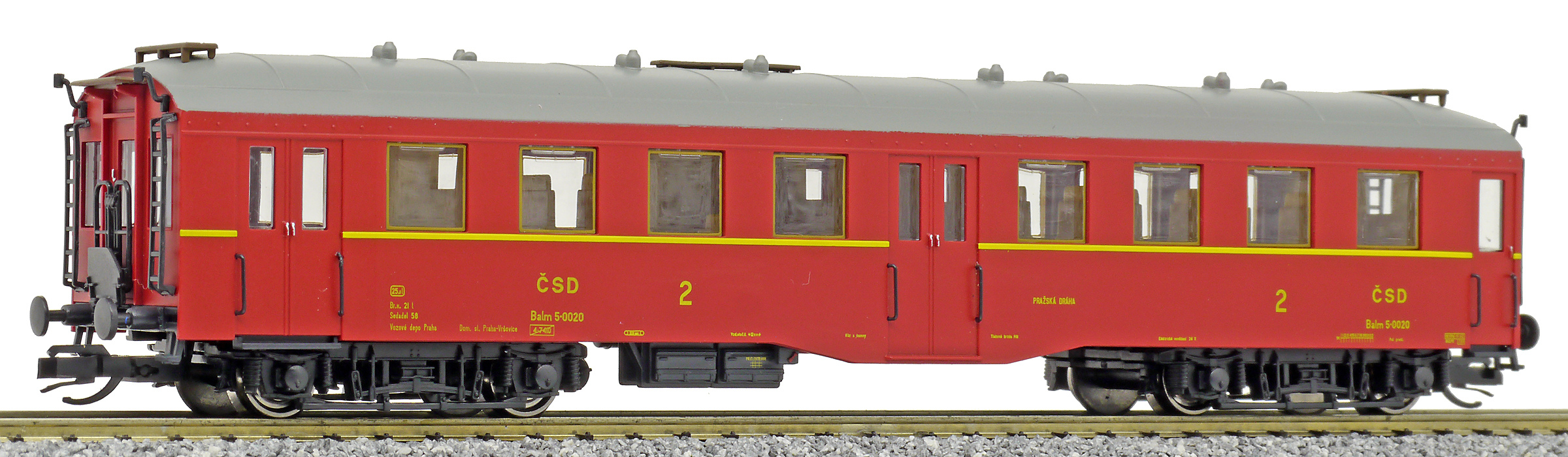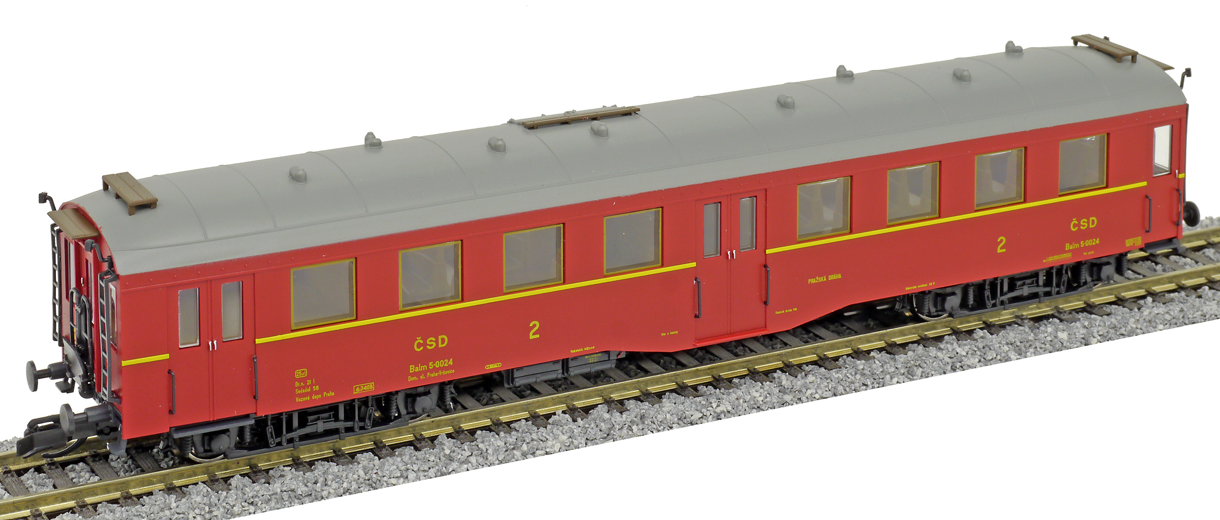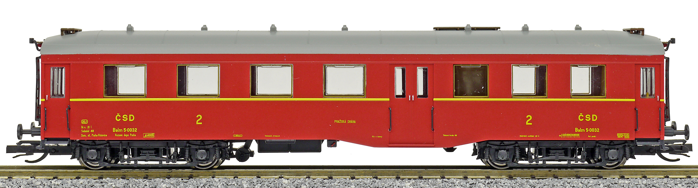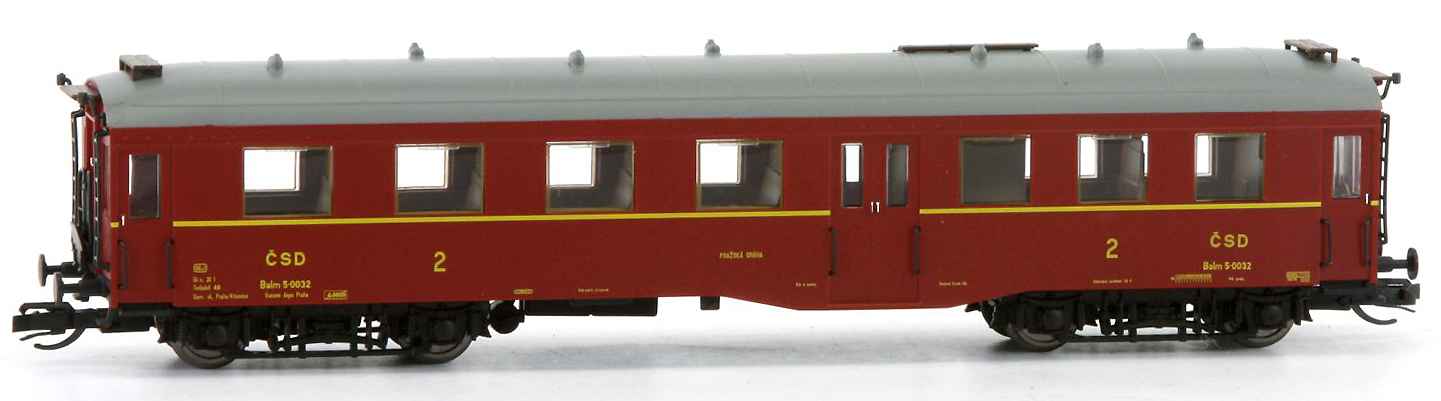 | osobní vůz červenohnědý s šedou střechou 2. tř. |