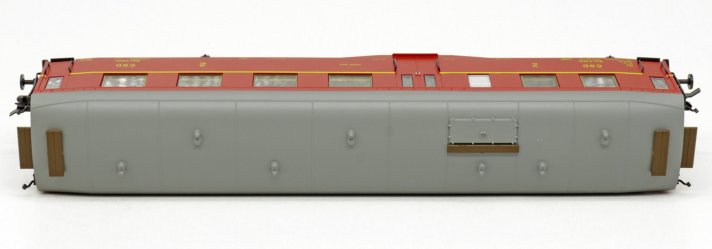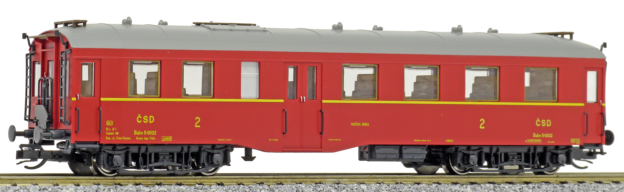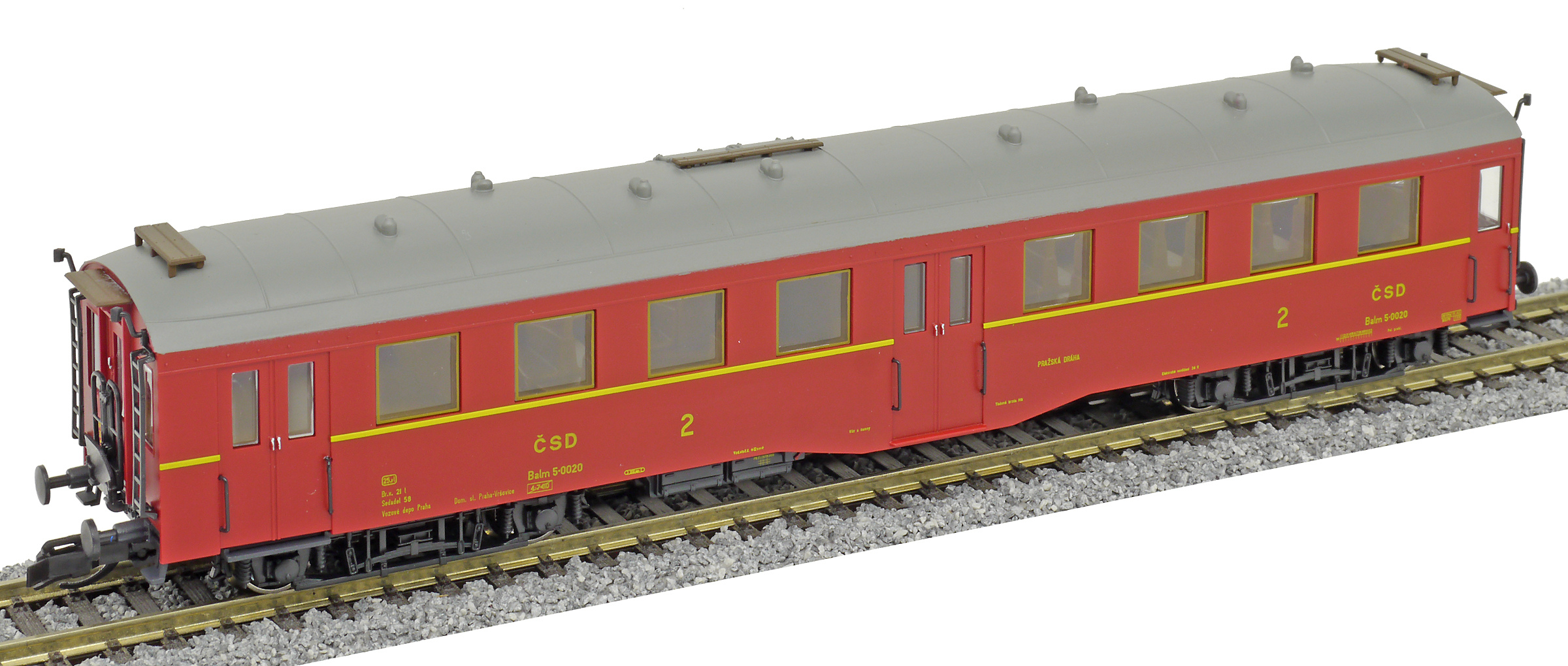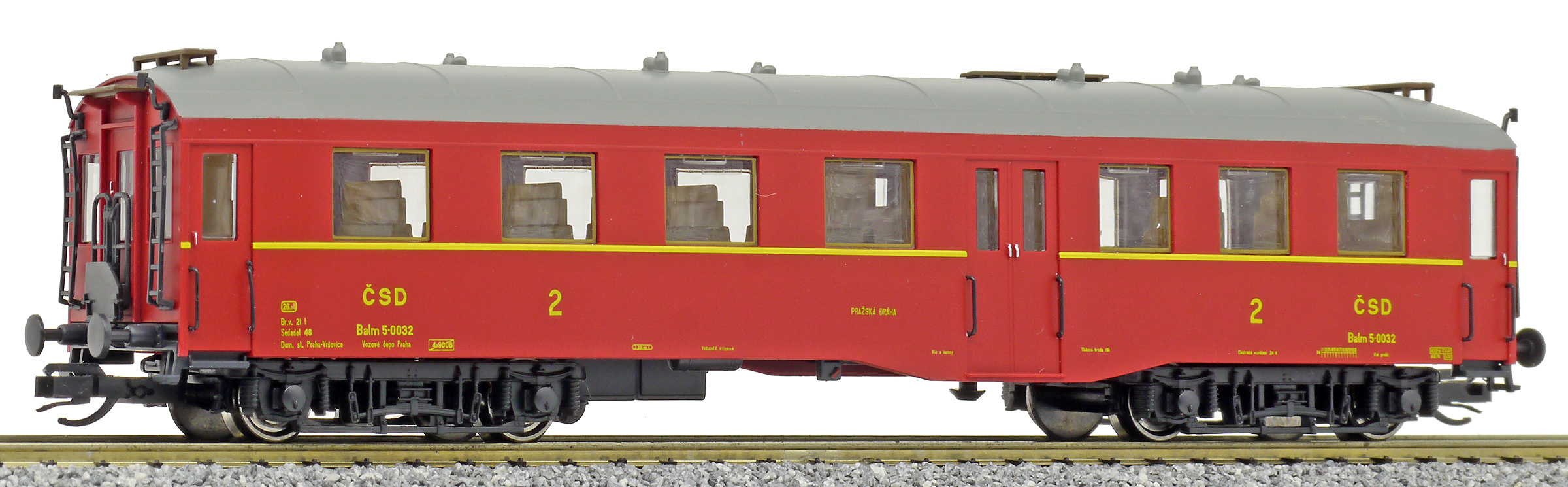 | osobní vůz červenohnědý s šedou střechou 2. tř. |